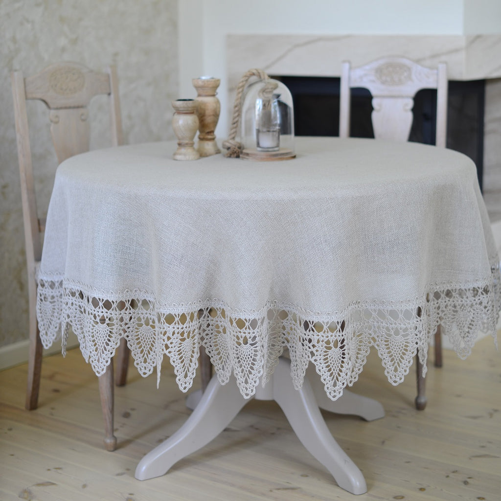 Round Tablecloth with Crocheted Lace