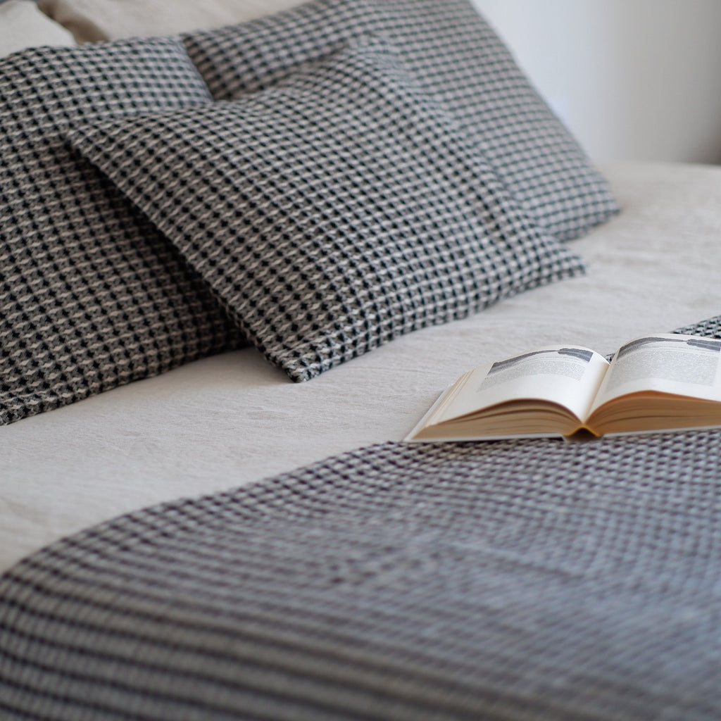 Linen Throw Natural linen/black waffle